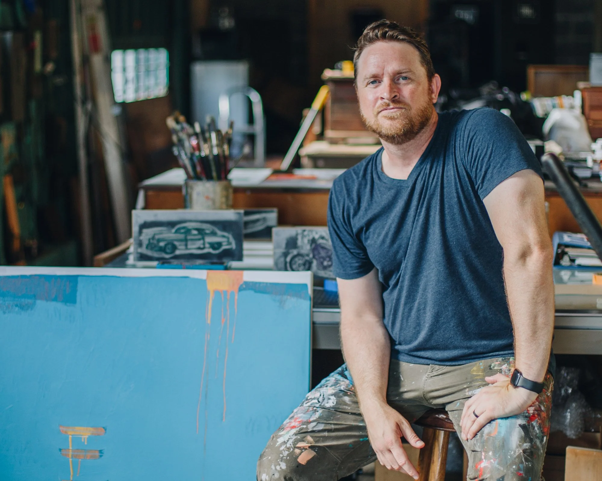 Chris McAdoo is an artist, strategist, and creative professional living in East Tennessee who believes that creativity can change the world. His work is intensely autobiographical and uses paint and canvas to focus on “the stories we tell others, the stories we tell ourselves, and the liminal space between those two shores”. His paintings and original prints have been featured in numerous exhibitions, private collections, and publications around the country and he has been an active studio artist for over twenty years. Chris is also an accomplished speaker and podcast host, traveling all over the United States, focusing on the power of creative thinking, entrepreneurship, and the practice of design. Chris is currently the director of strategy and engagement for the Knoxville Entrepreneur Center, home to the first official ETSY Maker City.